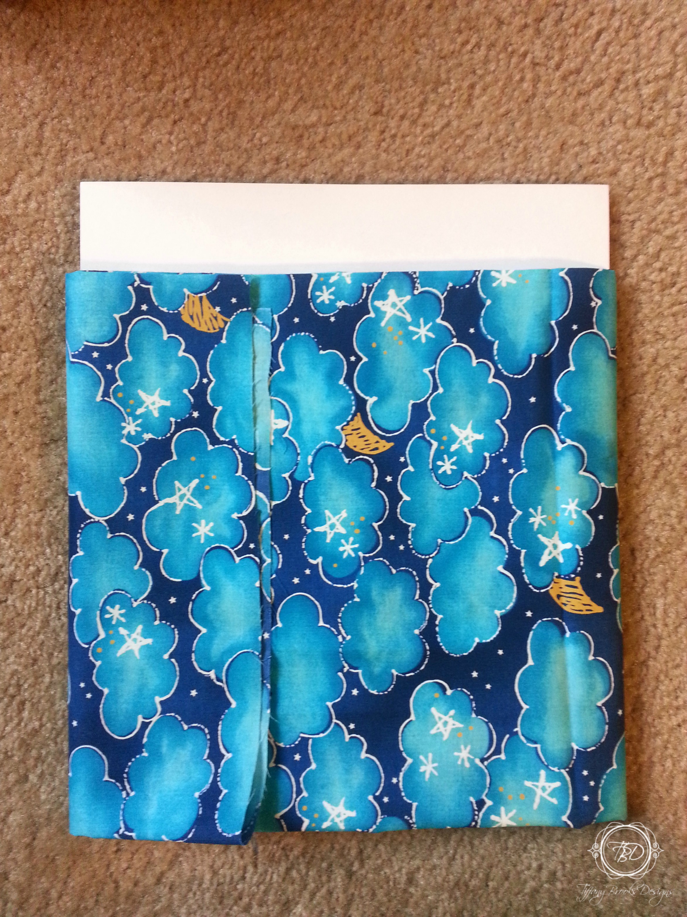 You can wrap your fabric any way that you like this is how I did mine. Starting from the far right end of my fabric I left just enough to hold as I started wrapping my fabric around the boards. The sticker in the top right hand corner is my item number and cost label. Keeping everything labeled makes it easier to calculate pricing as I am working on an item.
