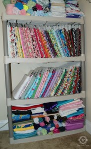 As much as I love fabric I find it to be the one supply I keep on hand that is the hardest to store. Finding a way to store my fabric so that I can easily look for a particular color or design is a nightmare at times.