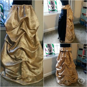 Now its time to make my bustle using the same brocade fabric I purchased for the corset top trim. Since the bustle is detachable from the skirt it will have it’s own waist band. This will make it easier to use this costume for other festivals.