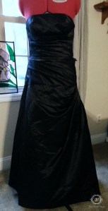 Utilizing as many supplies that I already had on hand was essential in keeping down the cost for my steampunk costume this year. I want to be able to create and entire costume with accessories for under $50.00 dollars. The main costume would be made by recycling this unused black formal dress. By cutting the dress at the waist line, I now have a corset top and a skirt.